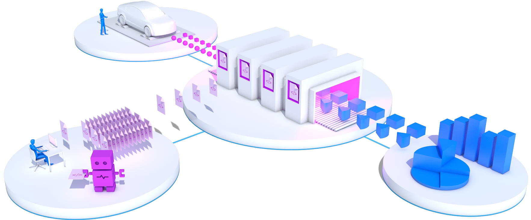 - Verarbeitung von Automotive Daten – ob zeitkontinuierliche Signale oder Diagnose-Shots, Messdaten oder Simulationsdaten, mit Anreicherungsmöglichkeit aus Programm- und Datenständen.